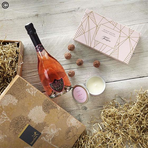 Sparkling Rose, Salted Caramel Truffles and Candle Gift Set